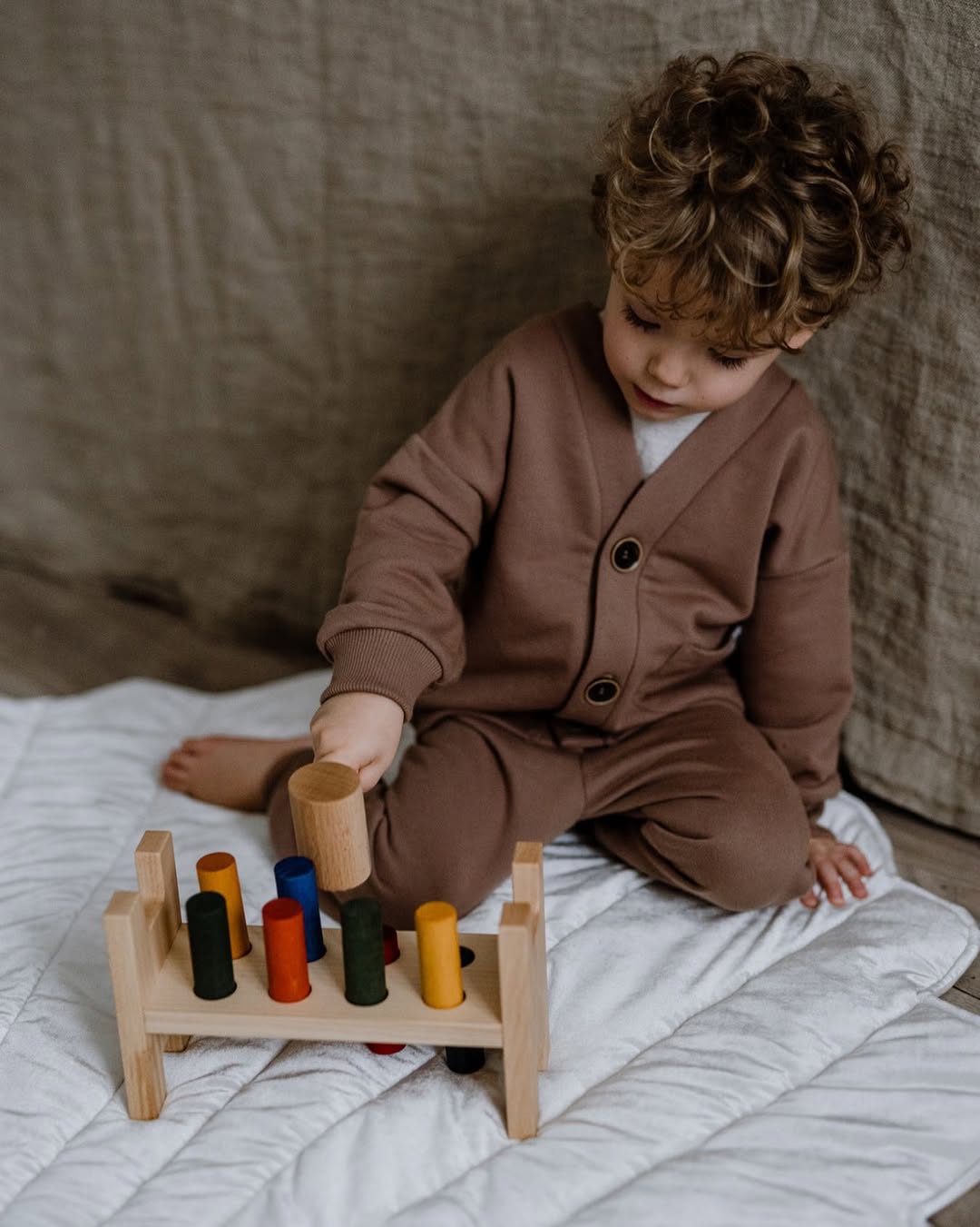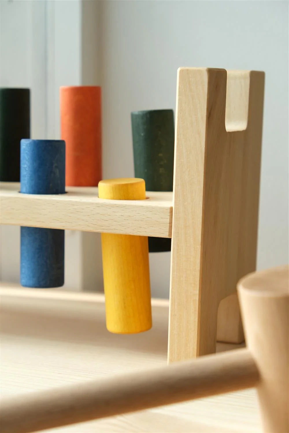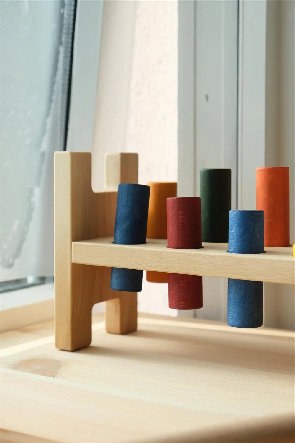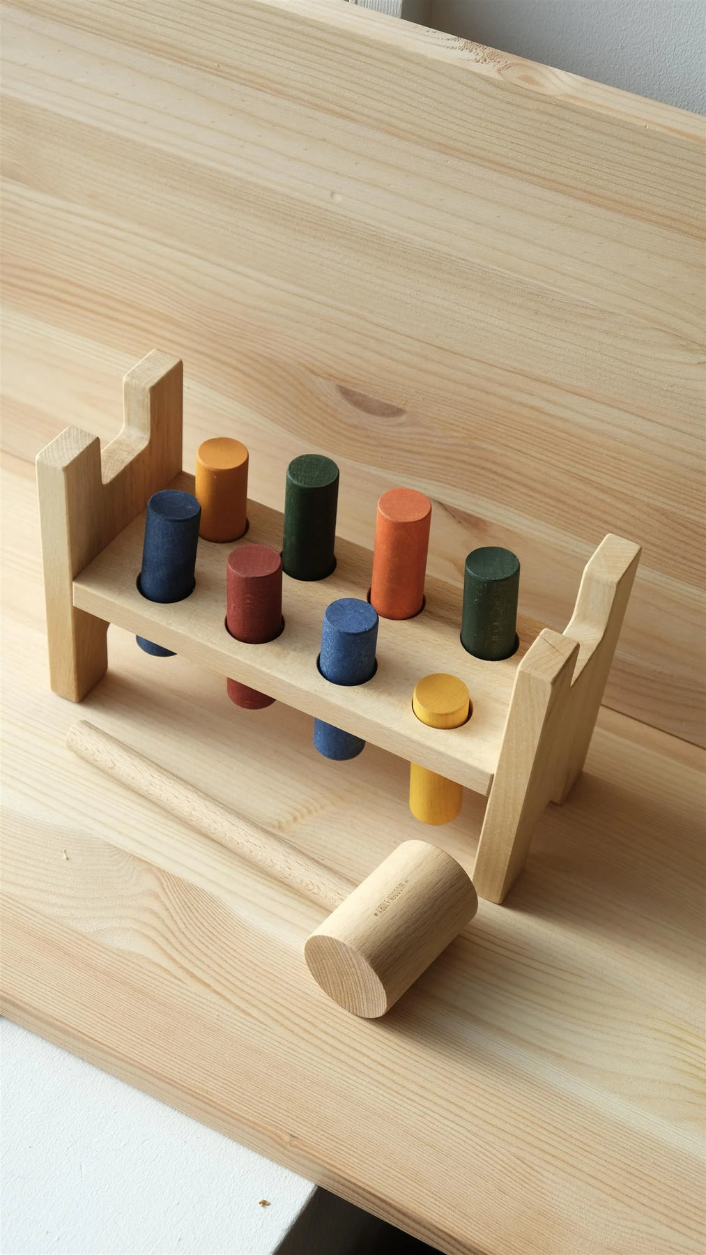 De Klopbank van Wooden Story is een klassiek houten speelgoed dat traditie combineert met een milieuvriendelijke aanpak. Met de houten hamer en kleurrijke cilinders kunnen kinderen precieze bewegingen, hand-oogcoördinatie en concentratie oefenen. Het plezier is om de pinnen in de gaten te hameren totdat ze naar de andere kant van het frame gaan - zodra het speelgoed is omgedraaid, kun je het spel helemaal opnieuw beginnen. Dit is een geweldige manier om motorische vaardigheden te ontwikkelen en kleurherkenning en logisch denken te leren.