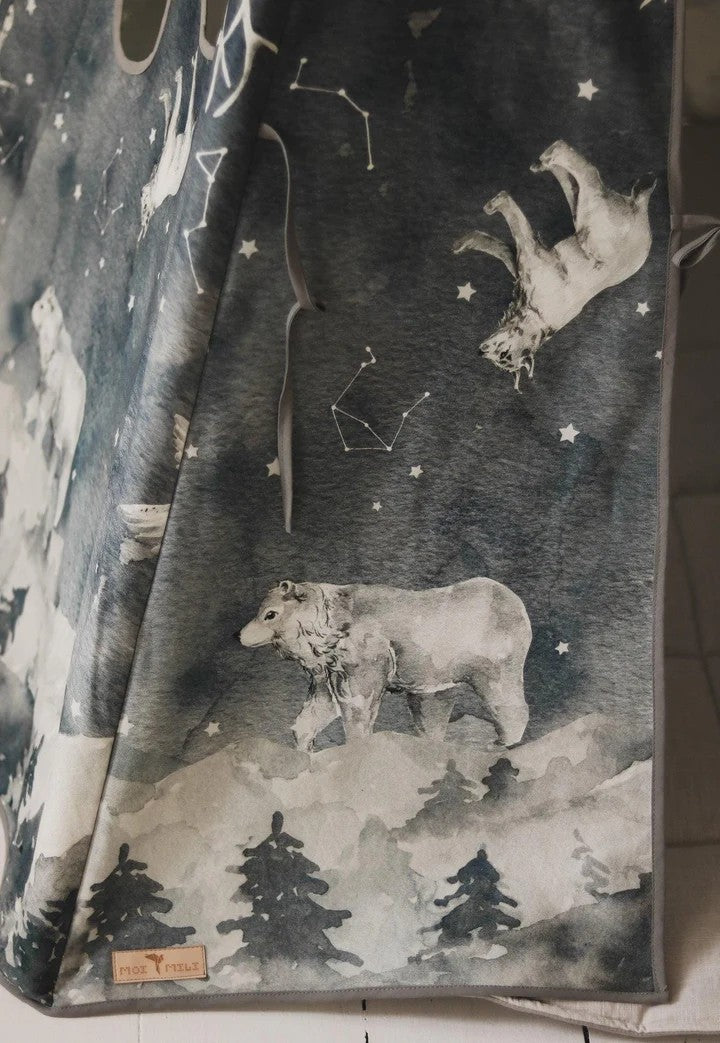Een knusse schuilplaats voor winterplezier en rustige momenten. Deze tipi heeft een magisch sterren-dierenpatroon, gecreëerd in samenwerking met illustrator Kasia Goraj-Stró?y?ska, geïnspireerd door heldere winternachten en bergachtige luchten.